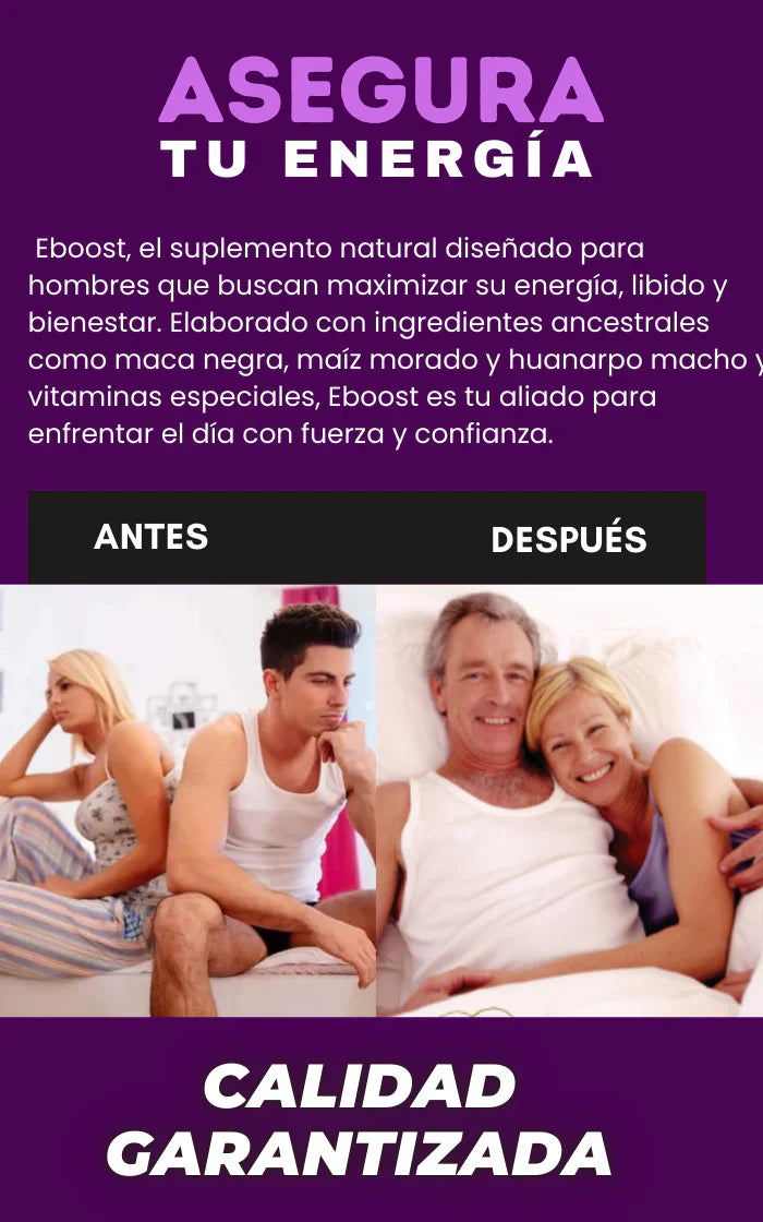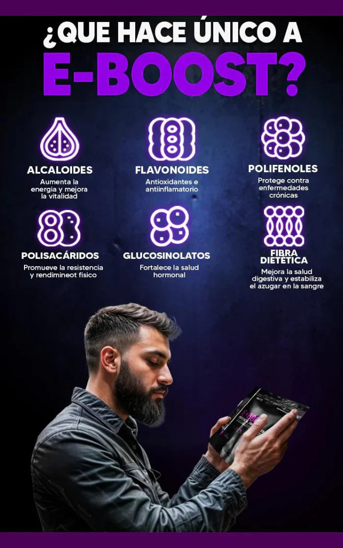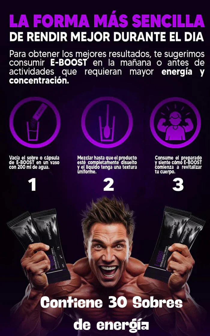 🔋 E-Boost es el energizante y vigorizante masculino ideal para hombres que trabajan duro, están agotados mentalmente o han notado una baja en su rendimiento físico y sexual.