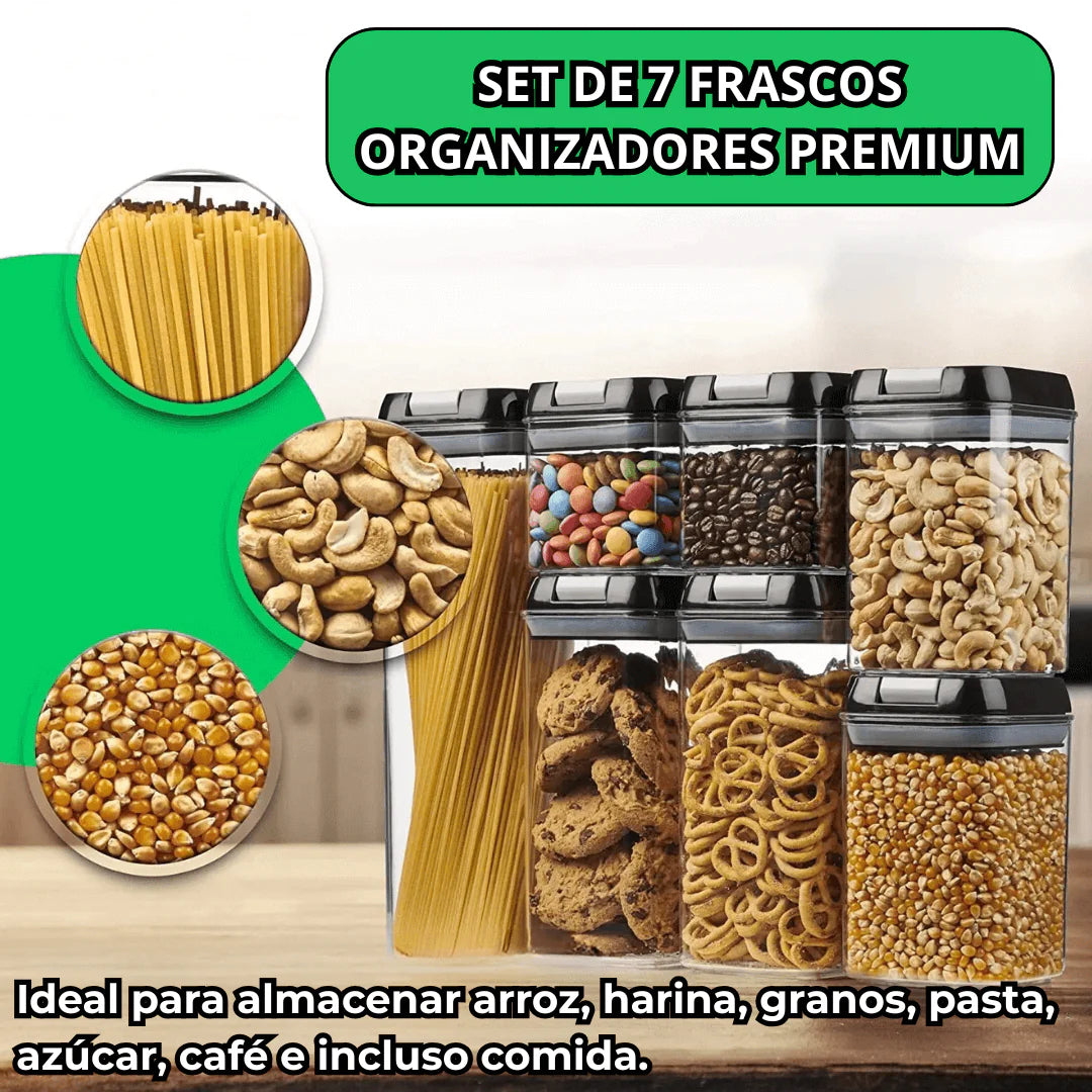 Set de 7 Frascos Organizadores Premium – Almacena Menestras, Alimentos y Más sin Derrames
