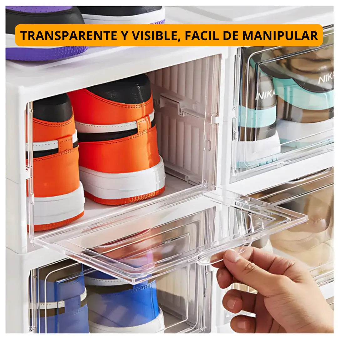 Organiza hasta 18 pares con estilo y sin ocupar espacio valioso, gracias a la Zapatera Acrílica Plegable PREMIUM de 6 niveles